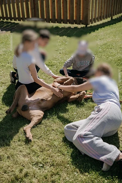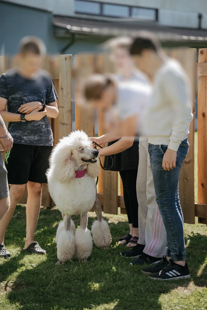 See mõte sai reaalsuseks 2025. a esimesel juulil, mil meie hoovis toimus soe ja sõbralik kohtumine. Lapsed ja noored said koertega jalutada, neid paitada, koos mängida ja lihtsalt olla — ilma hirmu või survestamata. Koerte perenaine ja peremees jagasid väärtuslikke nõuandeid selle kohta, kuidas koertega turvaliselt suhelda, milliseid liigutusi vältida ning kuidas koerad inimeste tundeid tajuvad.